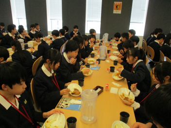 浜松市は、11月から5月までのセロリの生産量が日本一です。佐鳴湖と浜名湖の間に広がる神久呂地区や、天竜川に近い豊西地区で盛んに作られています。シャキシャキとした食感やさわやかな香りが特徴です。今日はベジタブルスープに取り入れました。