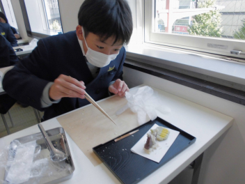 ごぼうには、おなかの中を掃除してくれる「食物せんい」がたくさん含まれています。ごぼうは、中国から伝わった野菜で、日本食には欠かせない野菜のひとつです。よくかんで、独特の風味や食感を味わって食べましょう。