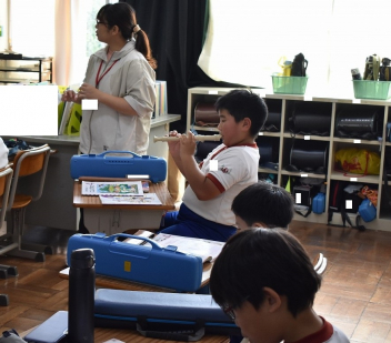 お二人の演奏に合わせて校歌を歌ったり、お二人に質問をしたりする時間もありました。