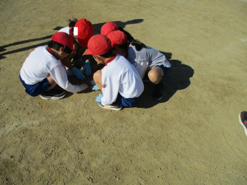• 園芸委員会の子供たちは、花壇整備ボランティアの皆様と一緒に、チューリップの球根を植えました。