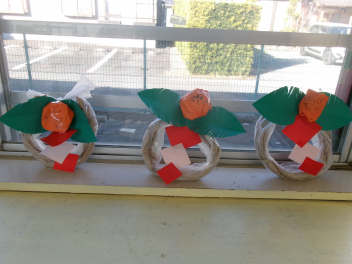 きりん組さんの部屋では、正月飾りを作っていましたよ。