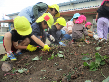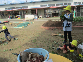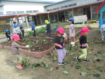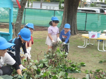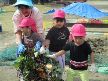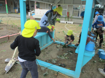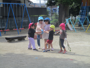ぞう組さんは、本物のトンカチと釘を使って遊んでいました。