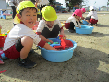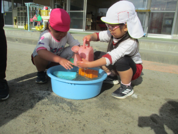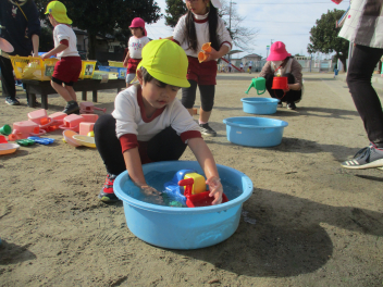 2学期もたくさん遊んだ砂場の玩具を一生懸命きれいに洗いましたよ。sad