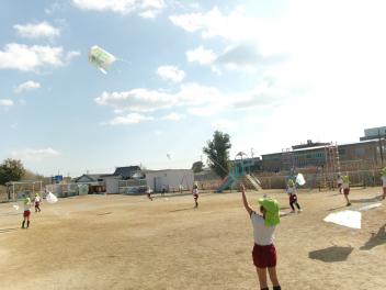 今日は風が強く凧がよく上がったので、凧あげも楽しみました。