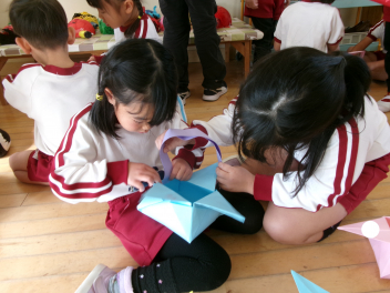優しく折り方を教えてあげたり、できたものを一緒に喜んだりしました。