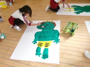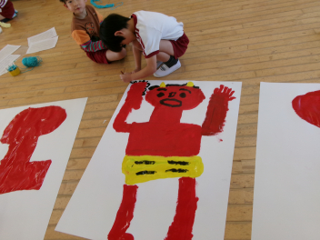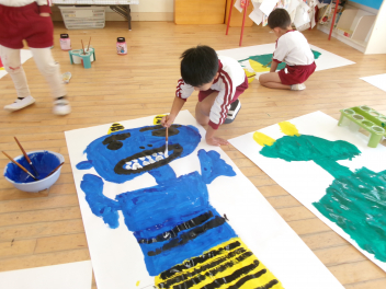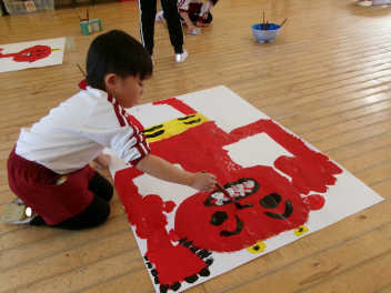 みなみっこタイムの後、年少いちご組さんは、鬼の絵を画きました。