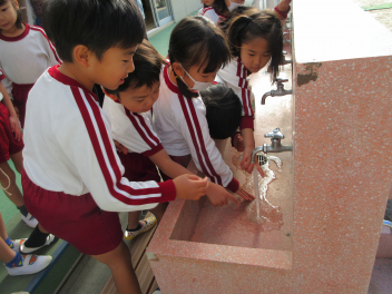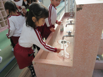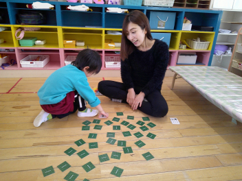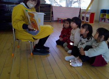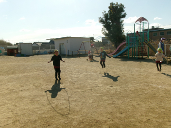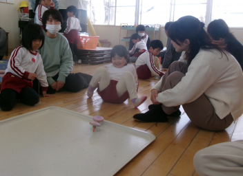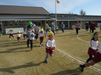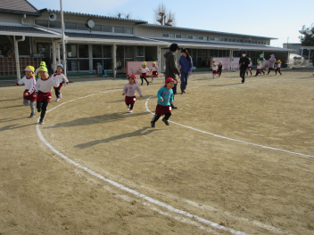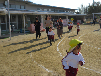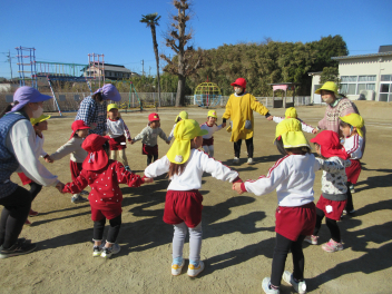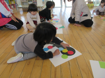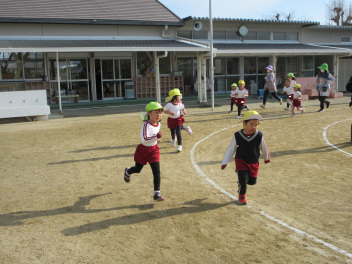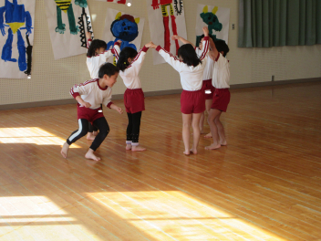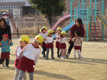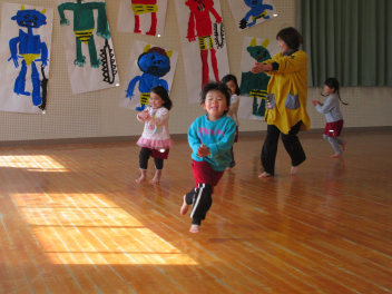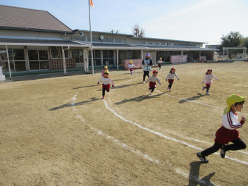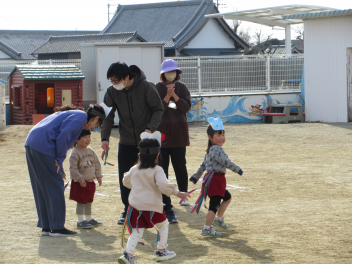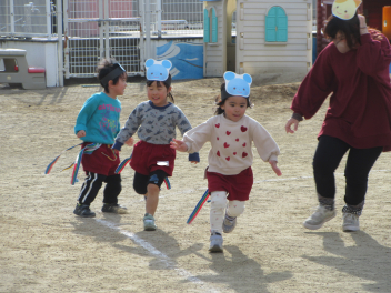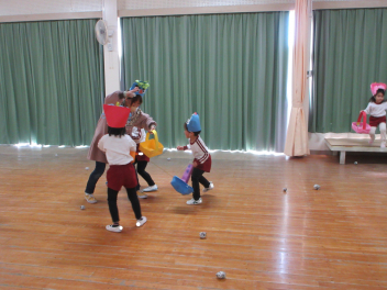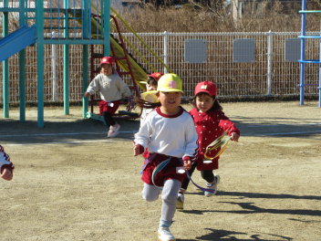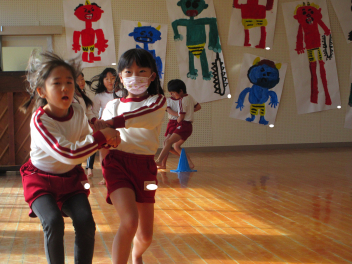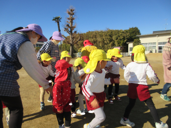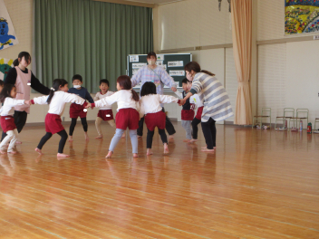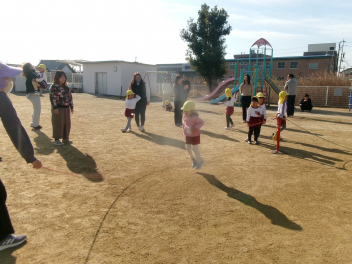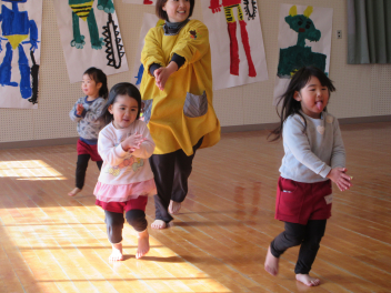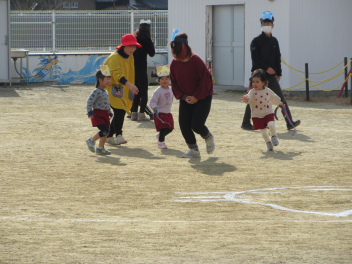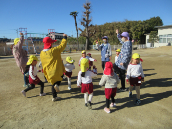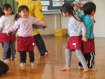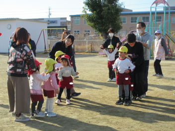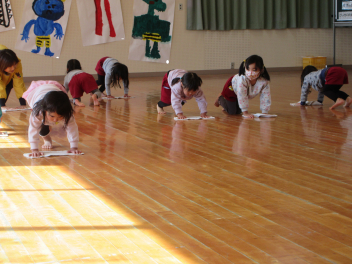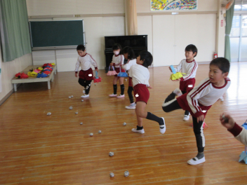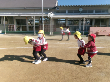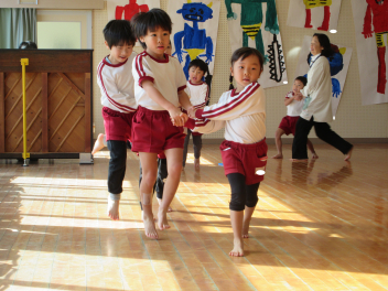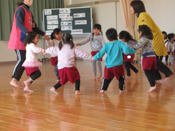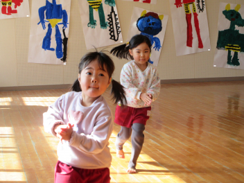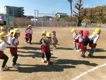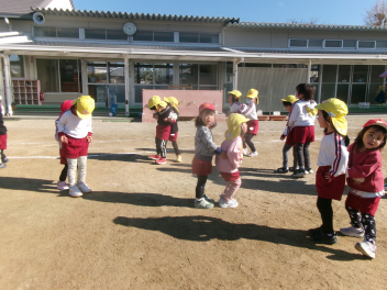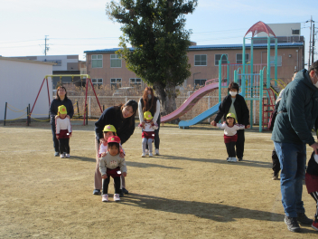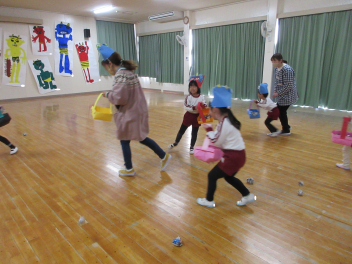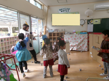 遊戯室に差し込む日差しが温かく、子供は張り切って行いました。