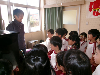 リズムの終わりににじ組さんは、3年間ピアノを弾いてくれたボランティアさんに感謝の気持ちを伝えました。
