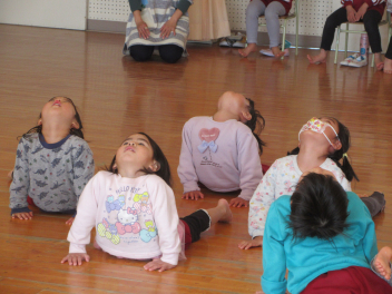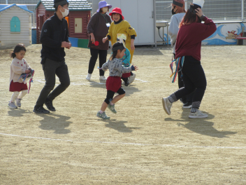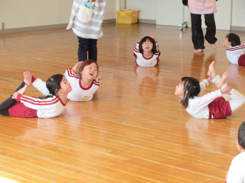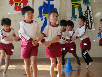 年中ひまわり組さんと年少いちご組さんは、繰り返しの中でできるものが増えて楽しそうに行いました。一人でなく二人や数人で行うものも、友達と一緒が嬉しそうでした。
