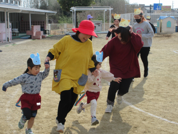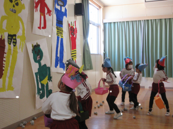ひまわり組さんが頑張ったので、鬼はどこかに逃げていきました。