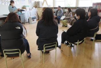 学級懇談会では、子供たちの成長の様子や進級に向けて担任から話をした後、グループで懇談しました。