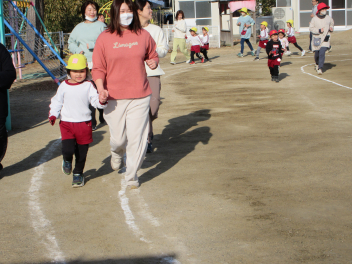 • 今日は年少いちご組さんの参観会があり、おうちの人と一緒にみなみっこタイムで走ったり踊りを踊ったりしました。