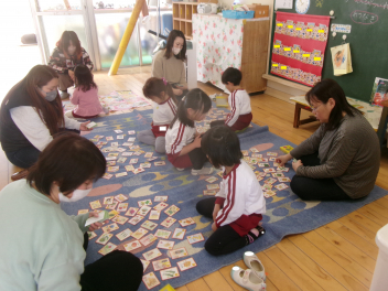 戸外で縄とびをしたり、室内でカルタ遊びをしたりしました。