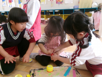 ひまわり組さんが優しく作り方を教えてあげていました。