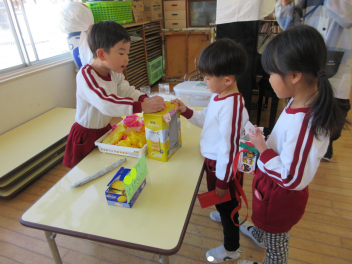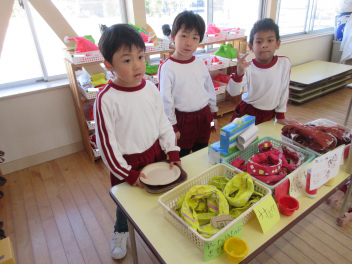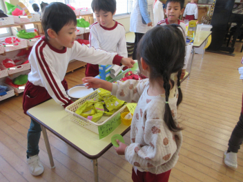 終業式後は、年長にじ組さんの最後のお店屋さんがオープンしました。