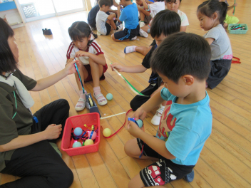 お家の方と行う競技は、今日は先生と一緒に行いました。