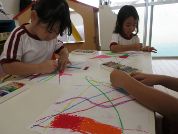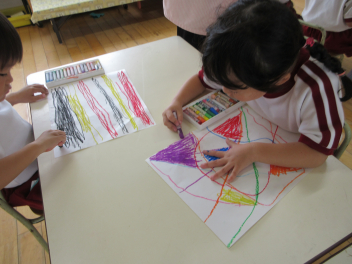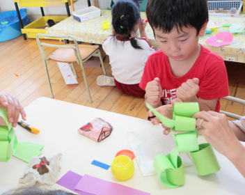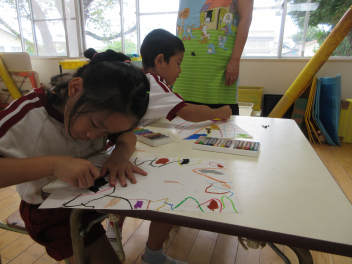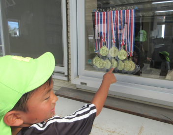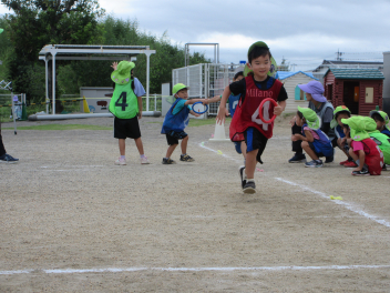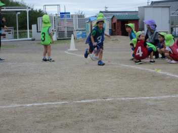 にじ組さんのリレーにも力が入ってきて、チームの友達と作戦を立て声を掛け合う姿が増えてきました。