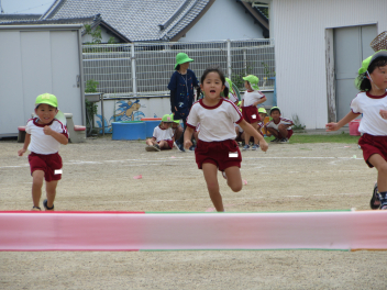 年少いちご組さんは、友達と走ることがとても楽しそうでした。