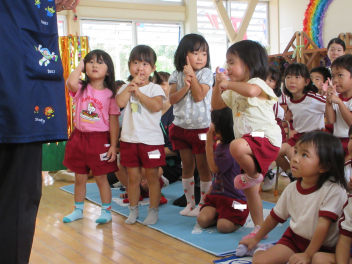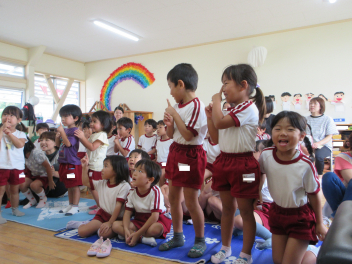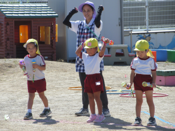 いちご組さんもひまわり組さんも、手に持った物を振りながら、楽しそうに踊りました。