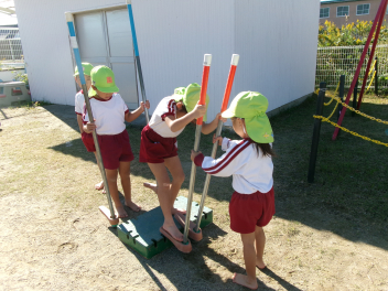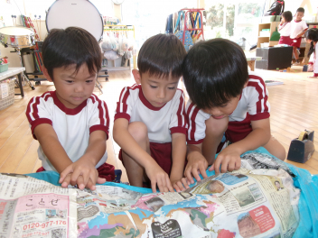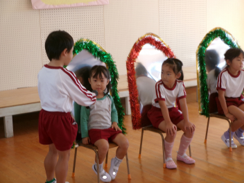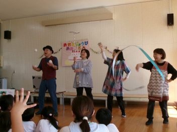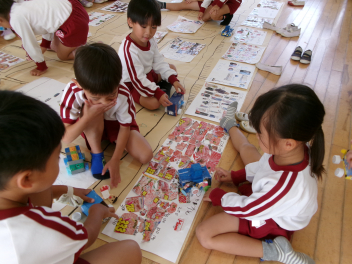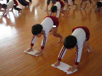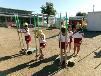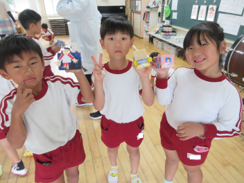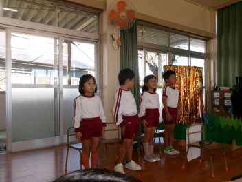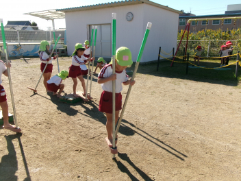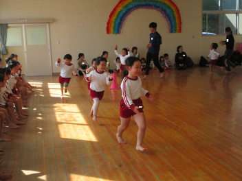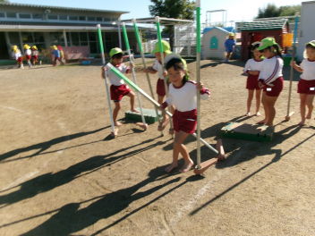 子供たちは、雑巾がけでは負けないようにスピードアップしたり、時計やドングリ、汽車など、いつもより張り切って動く姿が見られました。
