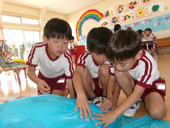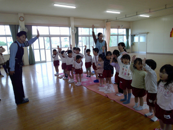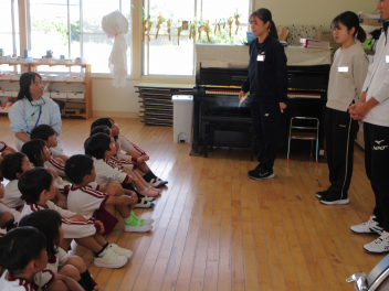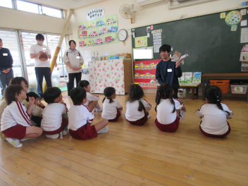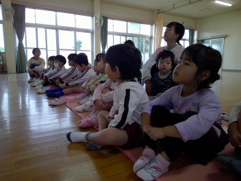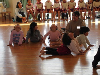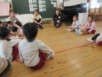 リズムの後は、それぞれのクラスに分かれて、子供たちの遊びの様子を見てもらったり一緒に遊んでもらったりしました。