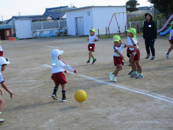 にじ組さんは、先生たちとドッジボール対決をしました。
