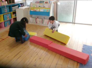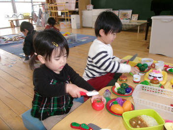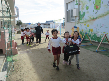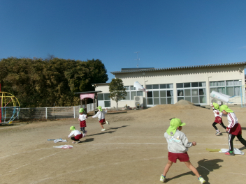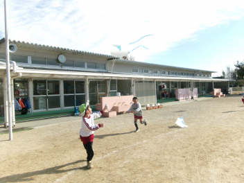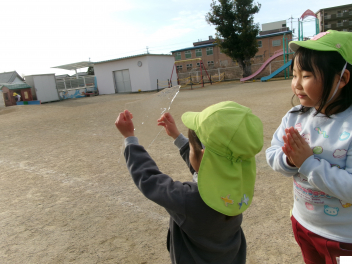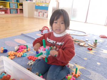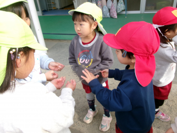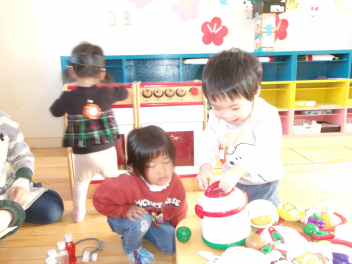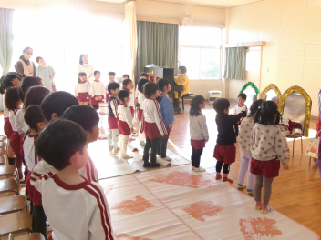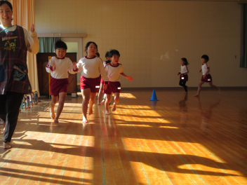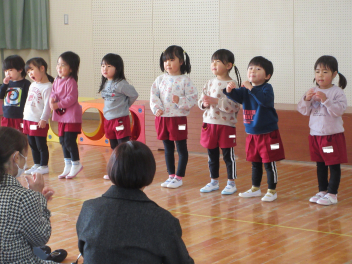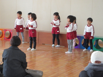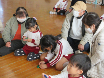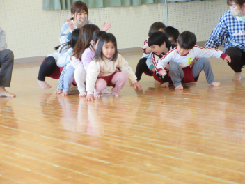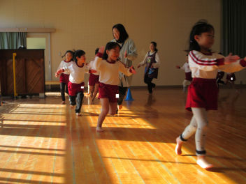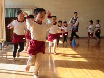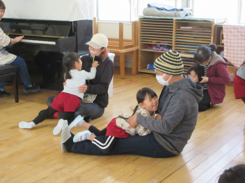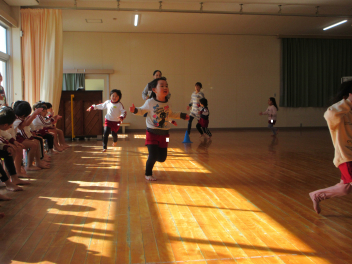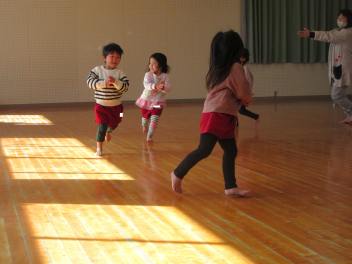 遊戯室に差し込む日差しが温かく、子供は張り切って行いました。