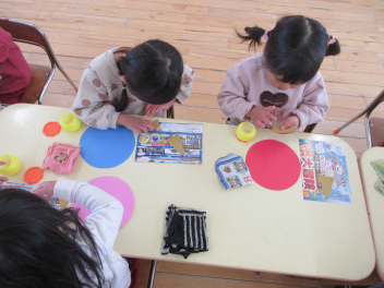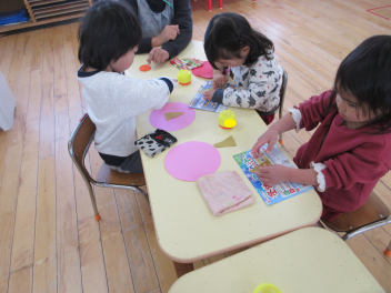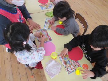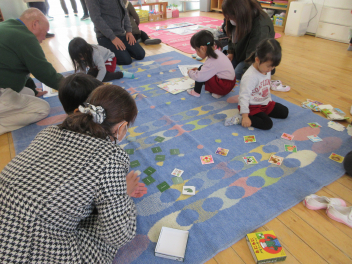 年少いちご組さんは、カード遊びやパズルなどを一緒にしました。