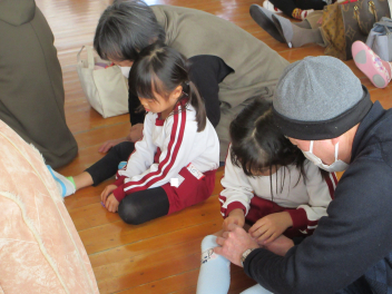 一緒に遊んでくれたお礼に肩たたきをしたり、プレゼントを渡したりしました。