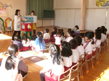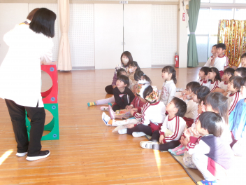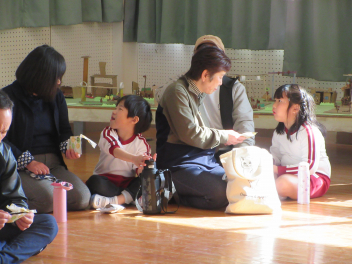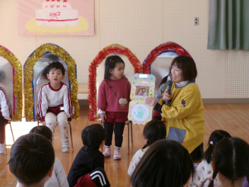 先生からのプレゼント、みんなから誕生日の歌のプレゼントの後は、先生たちのお楽しみの大型絵本を見ました。