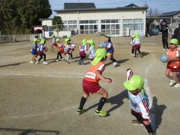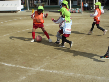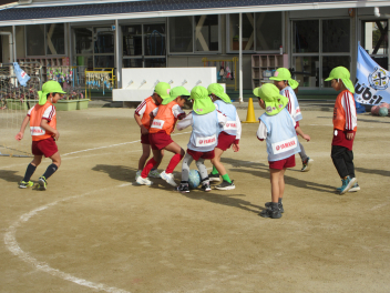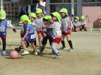 次にチームで試合を行い、ボールを真剣に追い掛けました。
