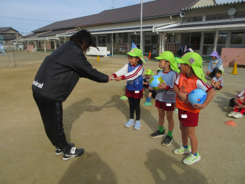 最後に、頑張ってサッカーをした御褒美に、サッカーボールと賞状をいただきました。