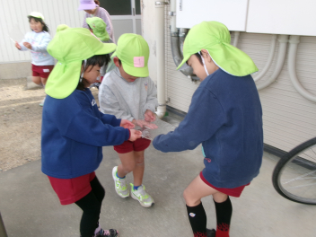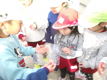 誕生会後は、氷取りをしました。