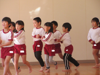 年中ひまわり組さんと年少いちご組さんは、繰り返しの中でできるものが増えて楽しそうに行いました。一人でなく二人や数人で行うものも、友達と一緒が嬉しそうでした。
