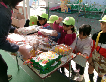 真剣な表情でお菓子を選び、大事に持ち帰りました。