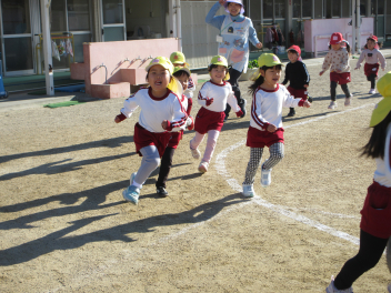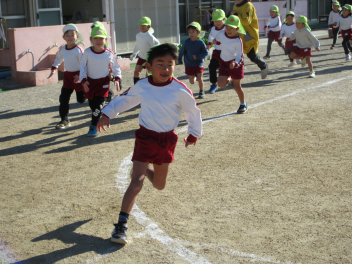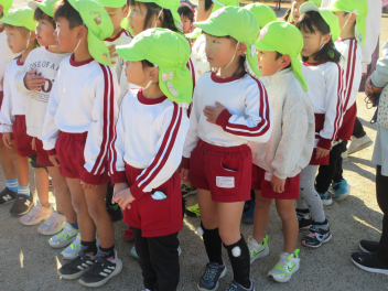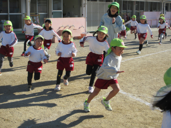 集会後、みんなで外に出て、「みなみっこタイム」を行い、走ったり体操したりして体を動かしました。