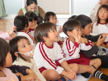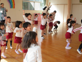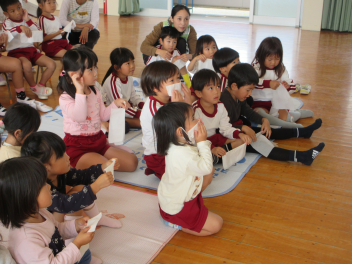 リズムの後は、それぞれのクラスに分かれて、子供たちの遊びの様子を見てもらったり一緒に遊んでもらったりしました。