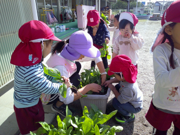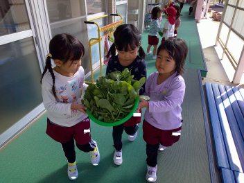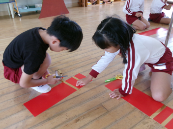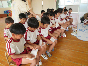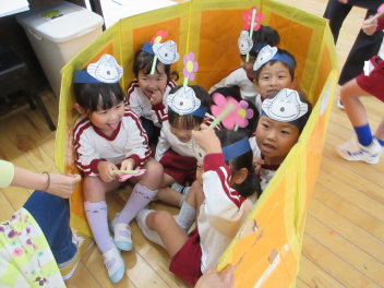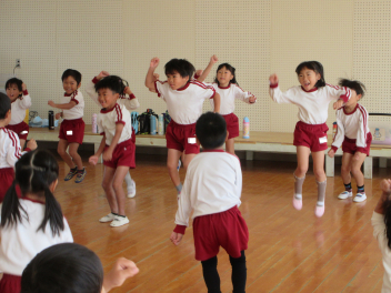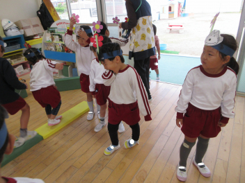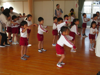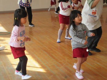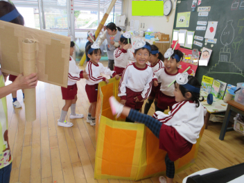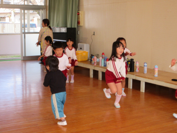子供たちは、雑巾がけでは負けないようにスピードアップしたり、時計やドングリ、汽車など、いつもより張り切って動く姿が見られました。