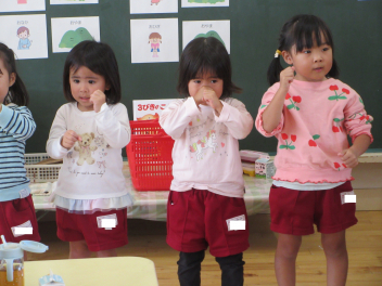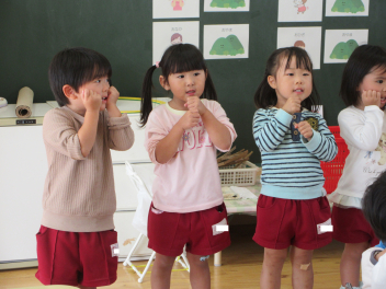 帰りには、一緒に手遊びをしたり歌を歌ったりして、今日楽しかったことを振り返りました。
