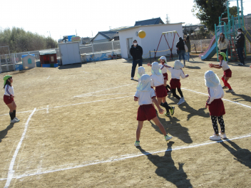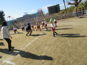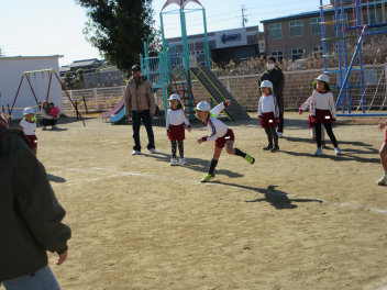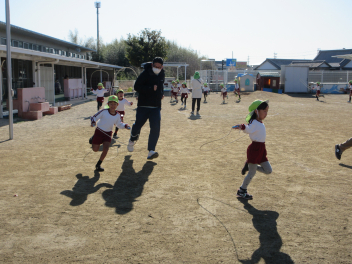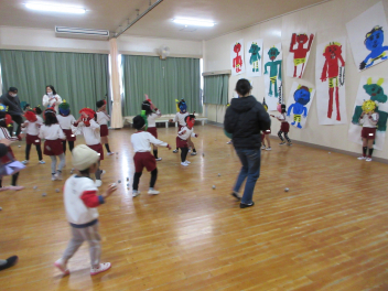 遊戯室に差し込む日差しが温かく、子供は張り切って行いました。
