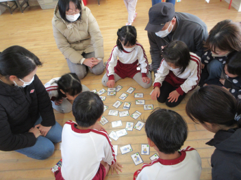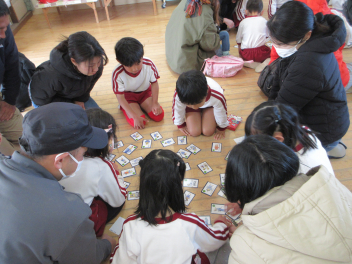 室内では、カルタ遊びをしたり、先日行えなかった豆まきごっこをしたりと親子でたくさん触れ合いました。