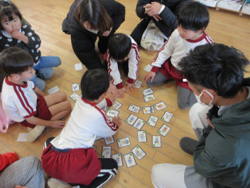 戸外で縄とびをしたり、室内でカルタ遊びをしたりしました。