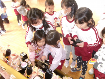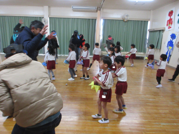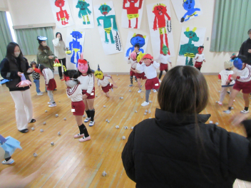 幼稚園では豆まき会がありました。