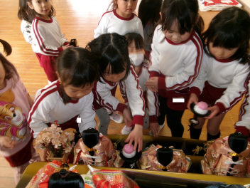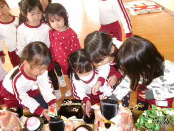 午後には、女の子がお雛様を出しました。