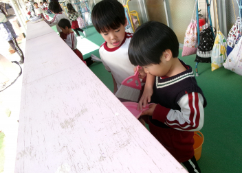 にじ組さんが、年少さんや年中さんに教えてあげながら一緒に出しました。