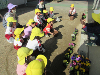 今日植えた花は、卒園式で式場に飾るため、卒園式まで大切にお世話をしていきます。