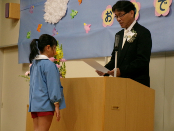 園長先生から修了証書をいただきました。