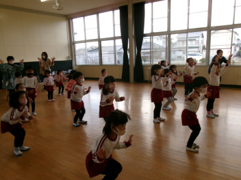 年中さんが声をかけて、年長さん、年少さんも煮込む様子を見に来ました。