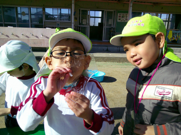 ボランティアのお母さんに入れてもらって、みんなで豚汁パーティーをしました。