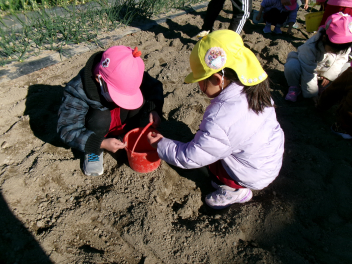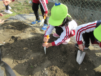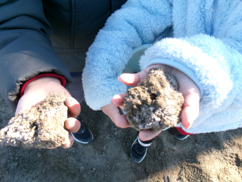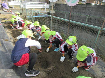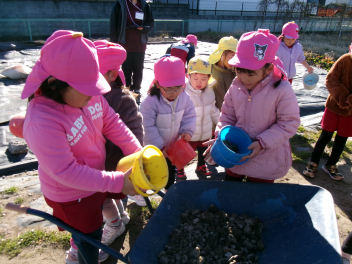 • 今日は、「げんきタイム」の後、ぐんぐん畑の石拾いをしました。2月になったら植えるジャガイモの種イモのために、畑の整備を頑張りました。